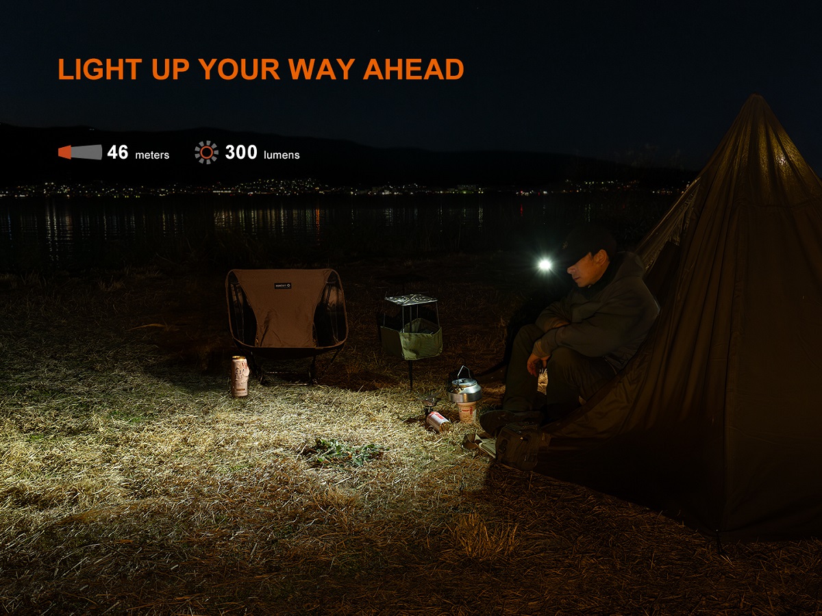 - 300 lumens maximum output and 46 meters maximum beam distance.