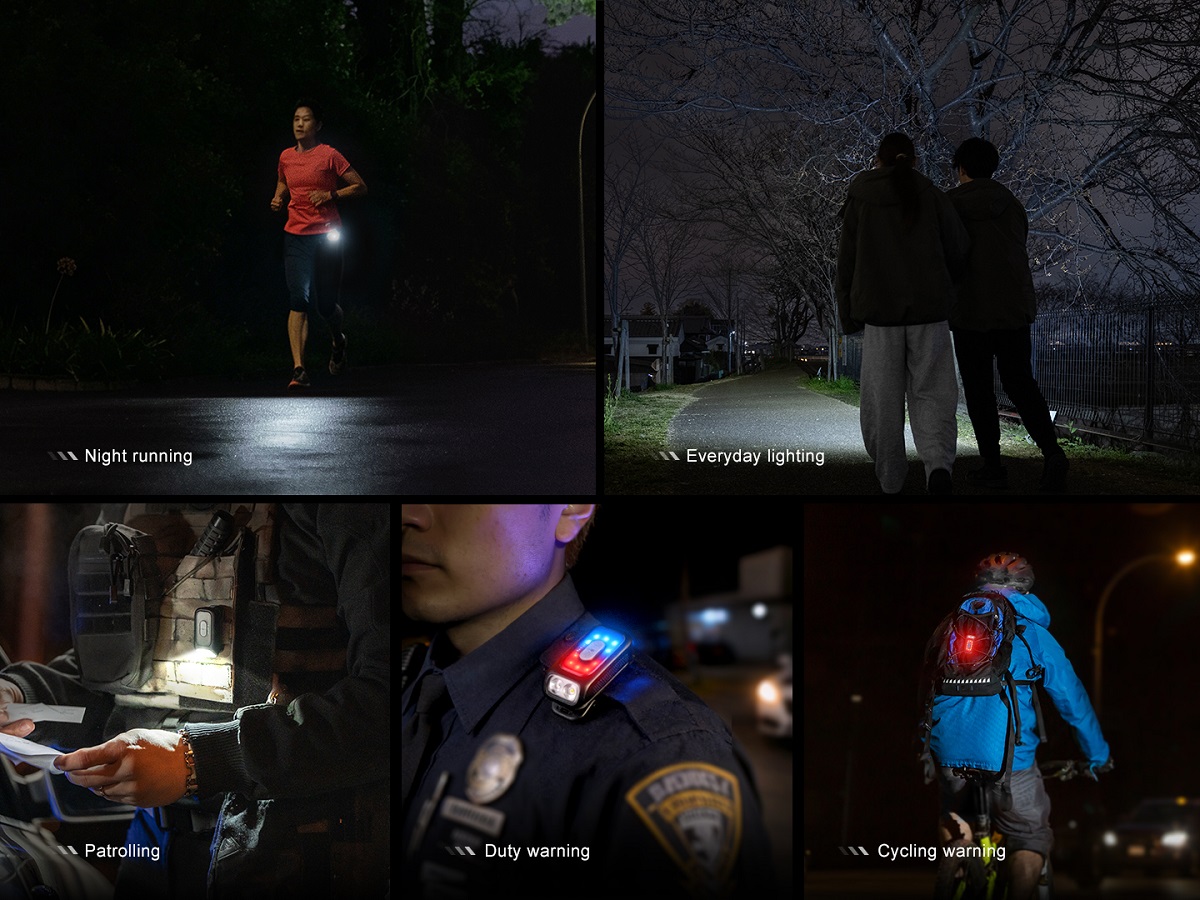 - Multi-light effect design integrating red-and-white dual main light and side warning light (supporting Red & blue flash, Red flash, and Blue flash), ideal for both everyday illumination and safety warnings.