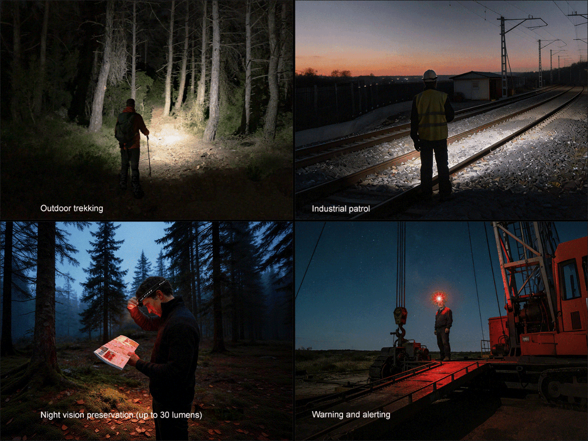 Combining high performance, versatility, and lightweight design, this HM53R headlamp delivers a max output of 1200 lumens for everyday tasks, features a red light mode to preserve night vision, and reaches up to 158 meters for long-distance exploration. It comes with a high-capacity 1600mAh 18350 battery, but is also fully compatible with 16340 and CR123A batteries, offering flexible power options for extended use. Its inner waterproof Type-C port supports universal and convenient charging, while the large side switch enables intuitive operation. Easily convert the HM53R to a chest light using the removable clip, or secure it hands-free with the magnetic tail-cap. Designed for industrial work, inspection and maintenance, and outdoor adventures, the HM53R adapts to all scenarios as your ultimate lighting companion.