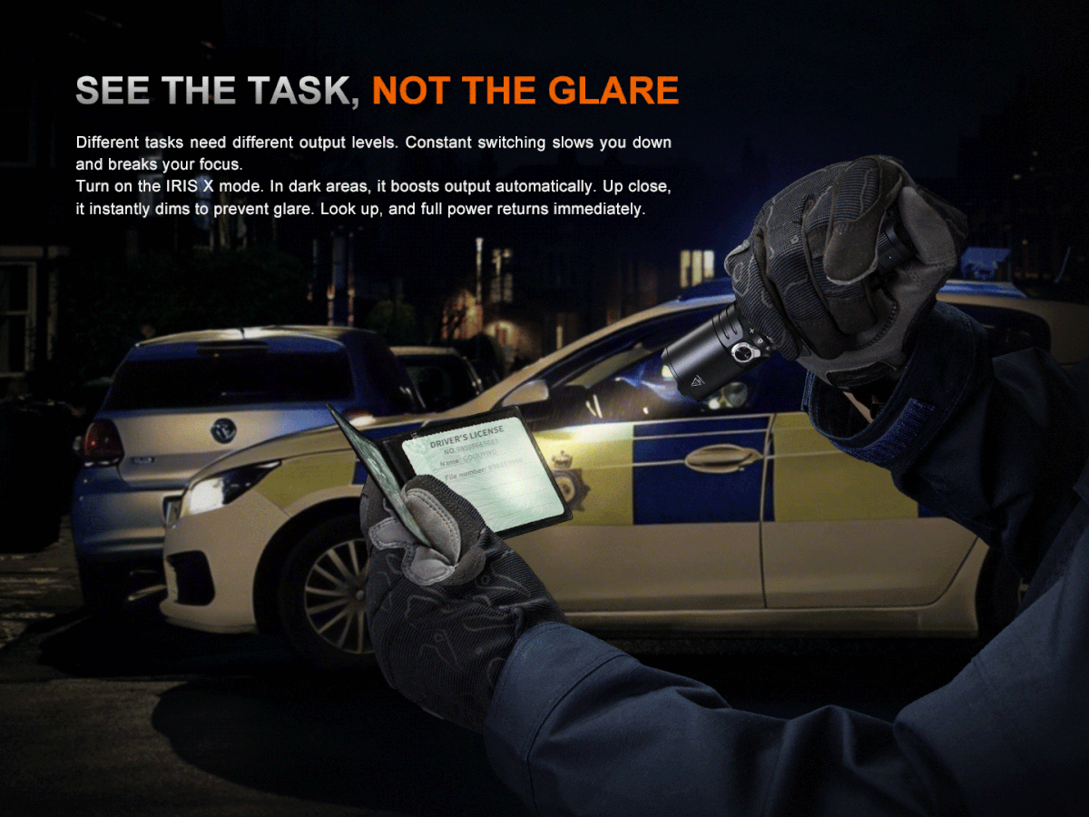 Aiming to exceed expectations of excellence, the Fenix TK15R combines cutting-edge IRIS X adaptive light control system with robust tactical performance. It delivers a powerful maximum output of 3200 lumens and throws a beam distance up to 490 meters. Power comes from a single ARB-L21-5000 V2.0 battery, offering ultimate convenience with direct recharging via the flashlight’s Type-C port. Designed for reliable operation, the flashlight features an innovative toggle switch that allows users to swiftly switch among IRIS X mode, Lockout mode, and Duty mode. The toggle switch also incorporates a functional switch for quick output selection and instant strobe. Additionally, the tactical tail switch provides momentary-on and constant-on functions for rapid response. Built-in IRIS X system continuously monitors ambient light, automatically adjusting output to perfect visibility while improving search efficiency. With its compact form and included body clip, the TK15R ensures easy, secure carry. Ready to excel in high-intensity outdoor and tactical environments, the TK15R stands as a dependable tool for adventurers, law enforcement personnel, and tactical operators alike.